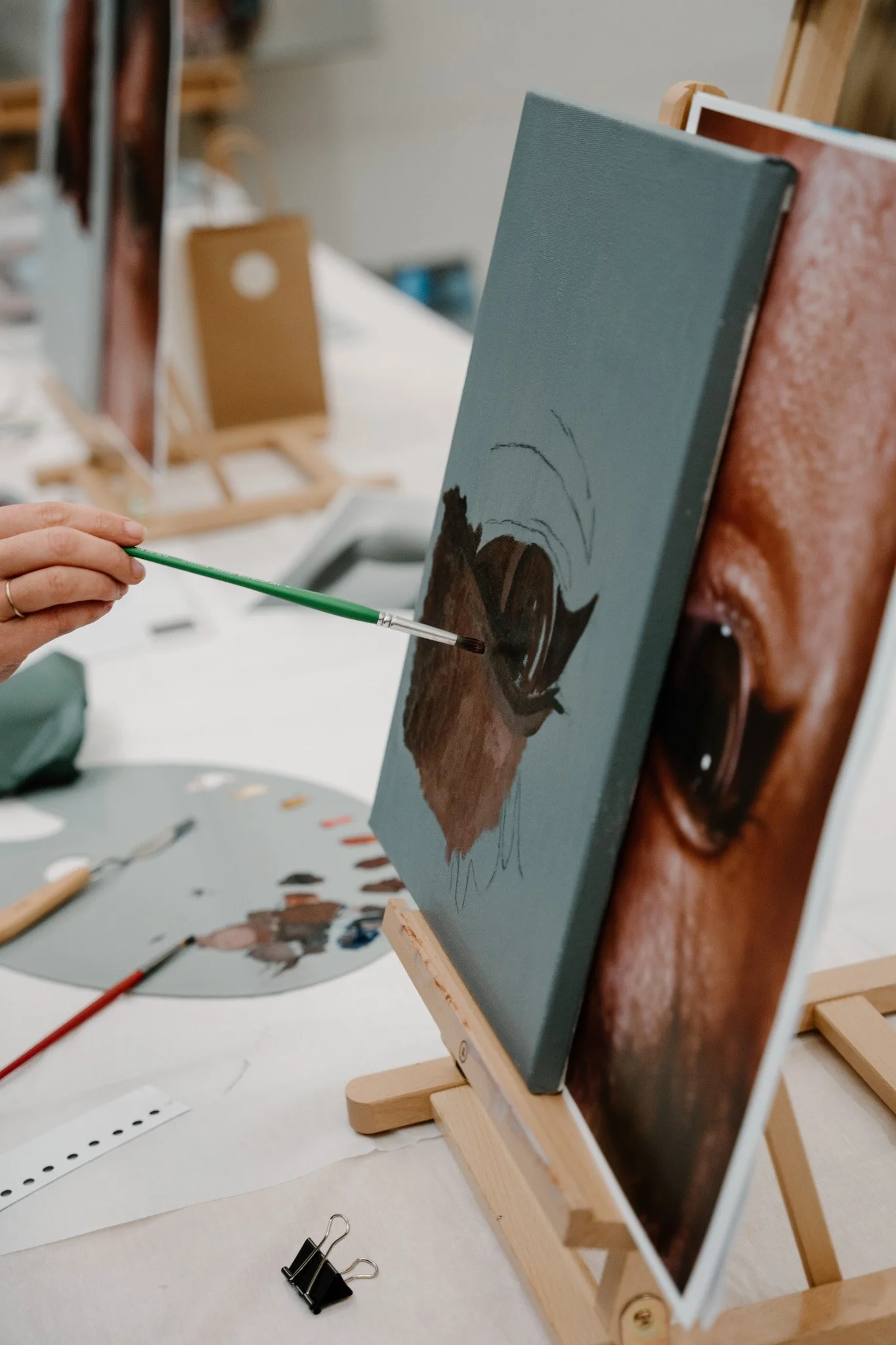 The Painting School runs as a fortnightly Saturday class that is project-based and focused on realistic oil painting. Each 2-hour class supports painters from beginner to advanced level and is designed to build foundational skills in value, perspective, temperature, and skin tones. With a pay-as-you-go* format, students bring a canvas and photo reference of their choice to develop their work at their own pace. Class times are 8.45M, 11am and 2pm, and paints are provided.